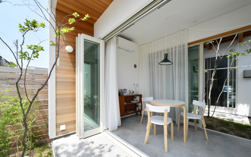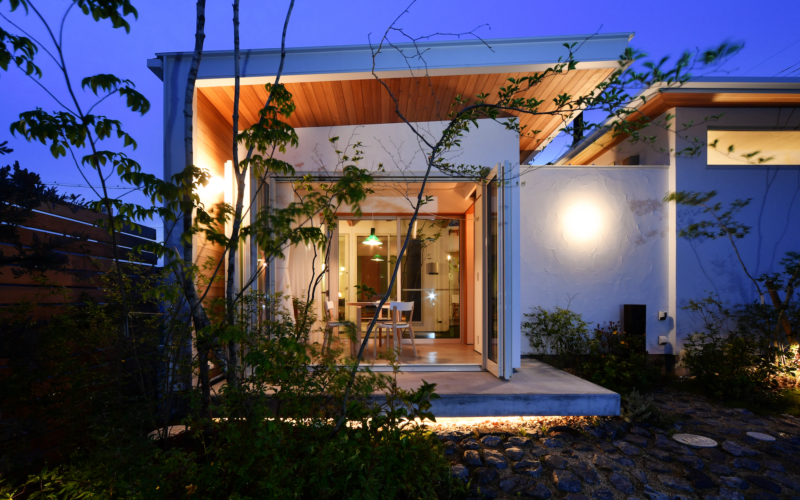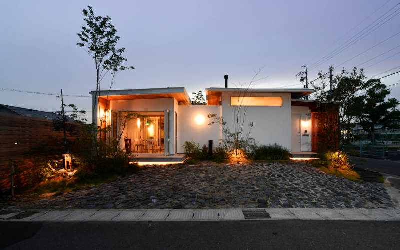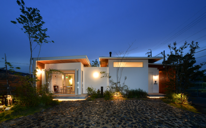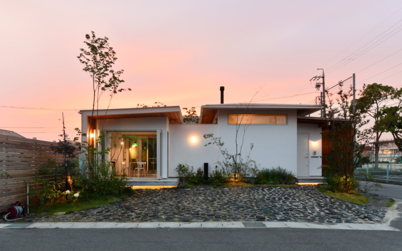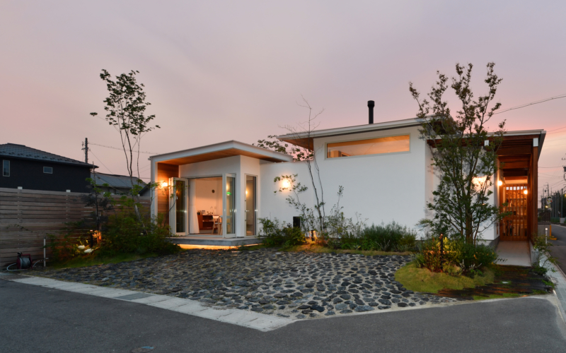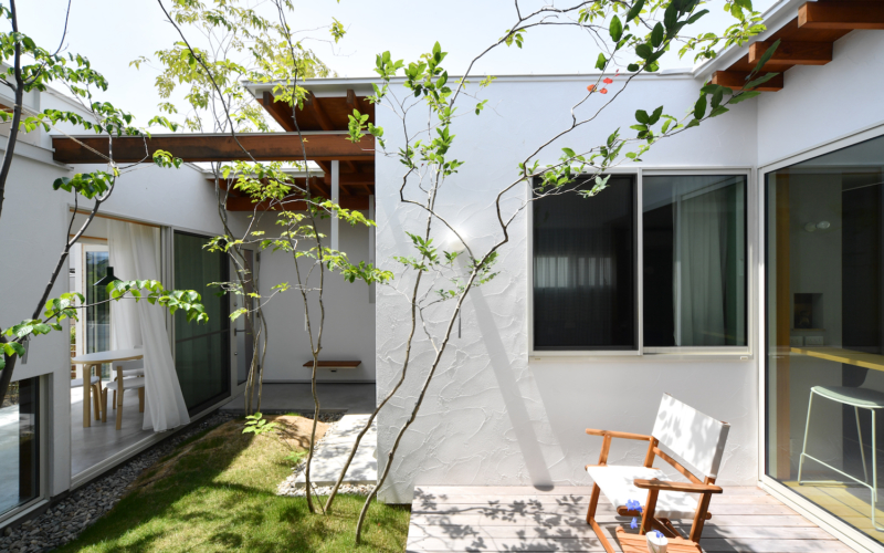 三重県桑名市の株式会社みずよしが手がけた新築物件は、内外共にスイスウォールを塗装。漆喰が映える中庭があり、断熱には木繊維断熱材シュタイコを採用し、夏でも冬でも快適です。